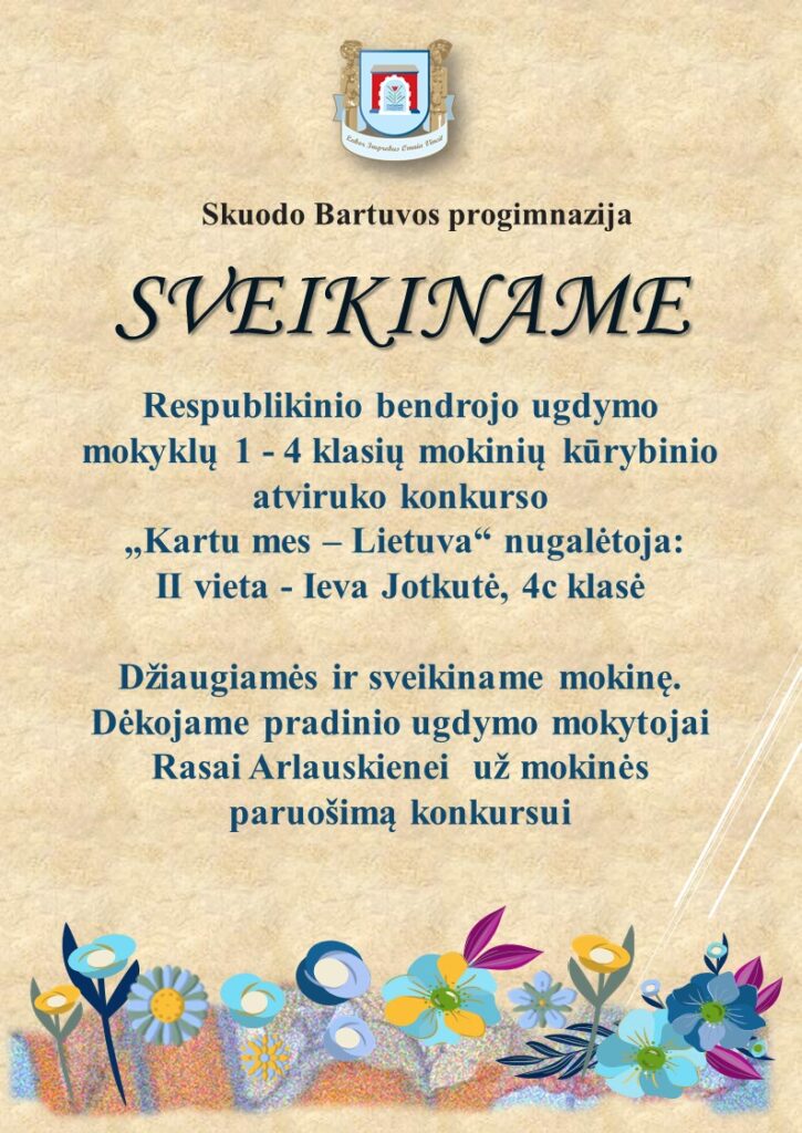 Skuodo Bartuvos progimnazijoje toliau tęsiasi iniciatyva „Kovas – mėnuo be patyčių“, skatinanti mokinius puoselėti draugystę ir pagarbą vienas kitam. Kovo 19 dieną 4c ir 4d klasės mokiniai dalyvavo bendrose veiklose, kurias vedė socialinės pedagogės Edita ir Gitana.