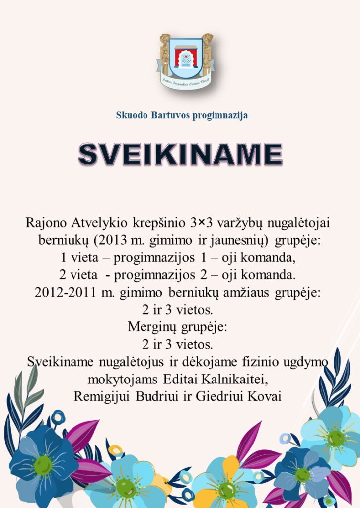 Kovo 25 d. Bartuvos progimnazijos sporto salėje tvyrojo ypatinga nuotaika. Čia vyko velykinės tinklinio varžybos, skirtos mokyklos 50 – mečiui paminėti. Tai buvo diena, kai susitiko azartas, pagarba ir tikra bendruomenės vienybė.