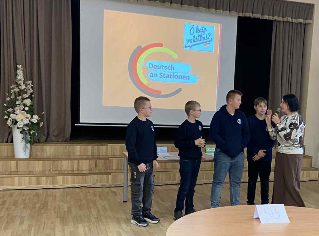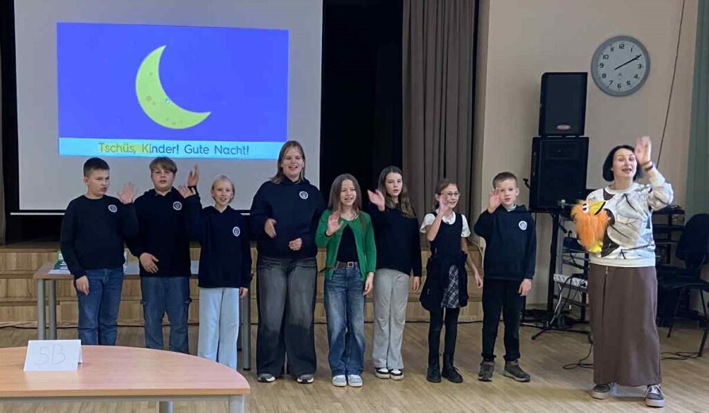 Pirmiausiai mokiniai vieni kitiems parodė, ką jau yra išmokę: visa salė vardino vokiečių kalbos abėcėlę, skambėjo pasisveikinimo daina. 6-os klasės mokiniai padeklamavo eilėraštį ir pasakė skaičiuotę. Vyresnių klasių mokiniai puikiai pristatė Partizip II formas ir „sušoko“ prielinksnių šokį.