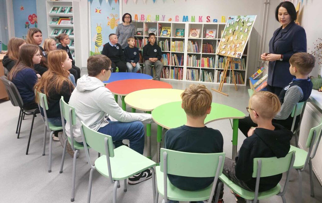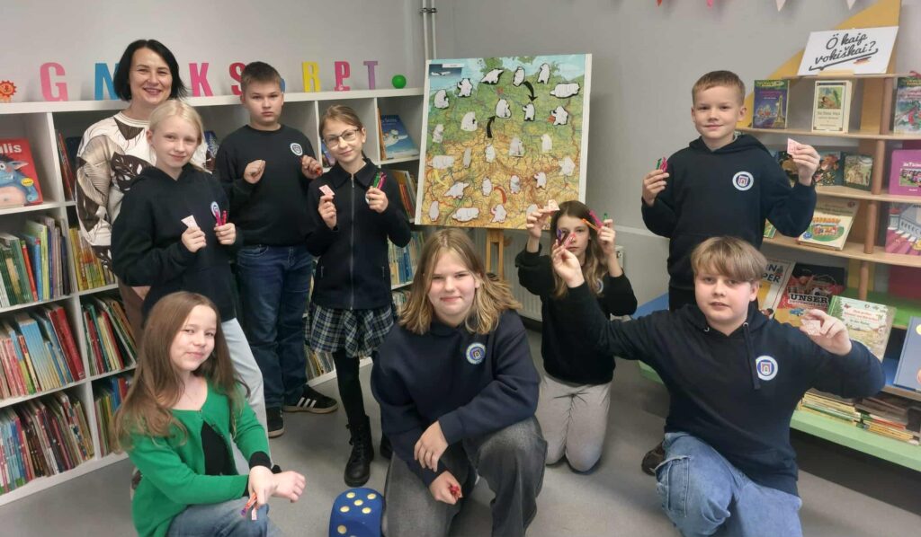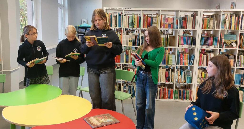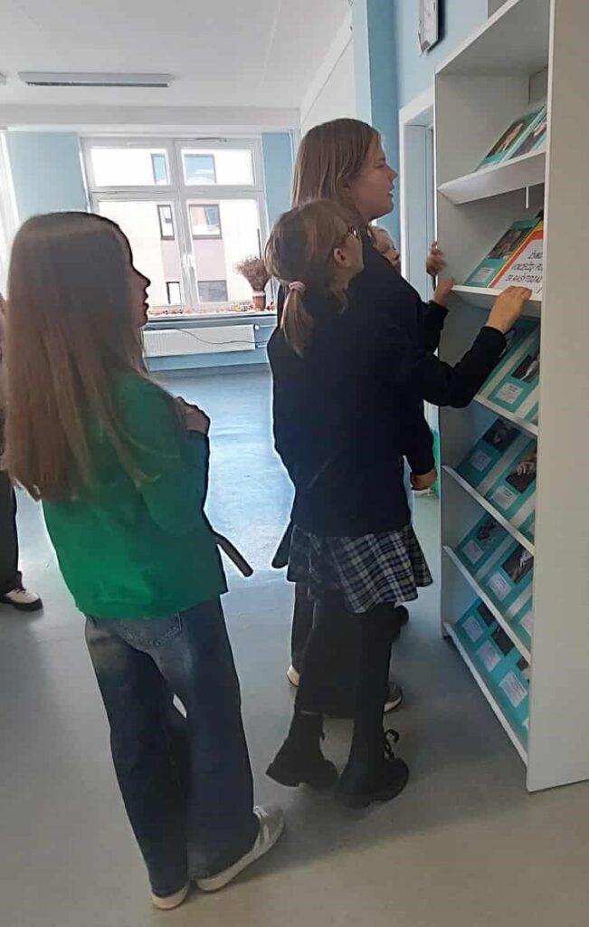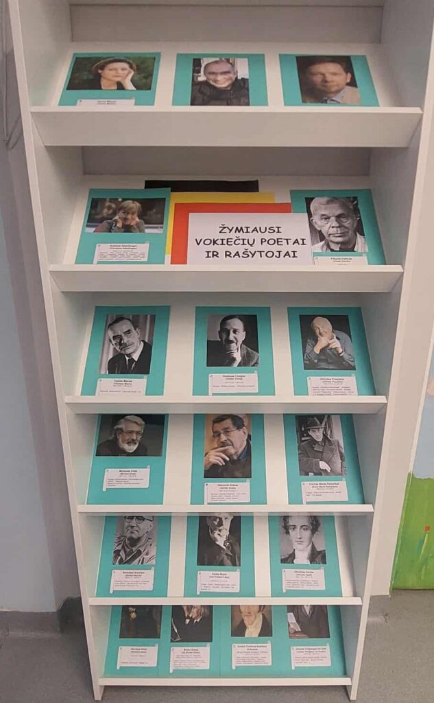 5 klasių mokiniai progimnazijos bibliotekoje susipažino su vokiškai kalbančių šalių rašytojais ir poetais, jų kūriniais, išleistomis knygomis ir dalyvavo nuotaikingoje viktorinoje.