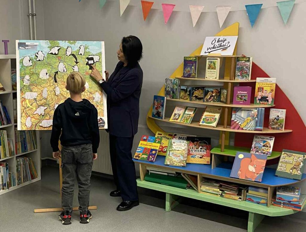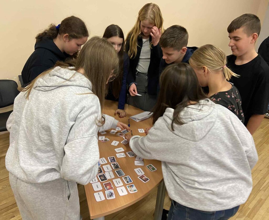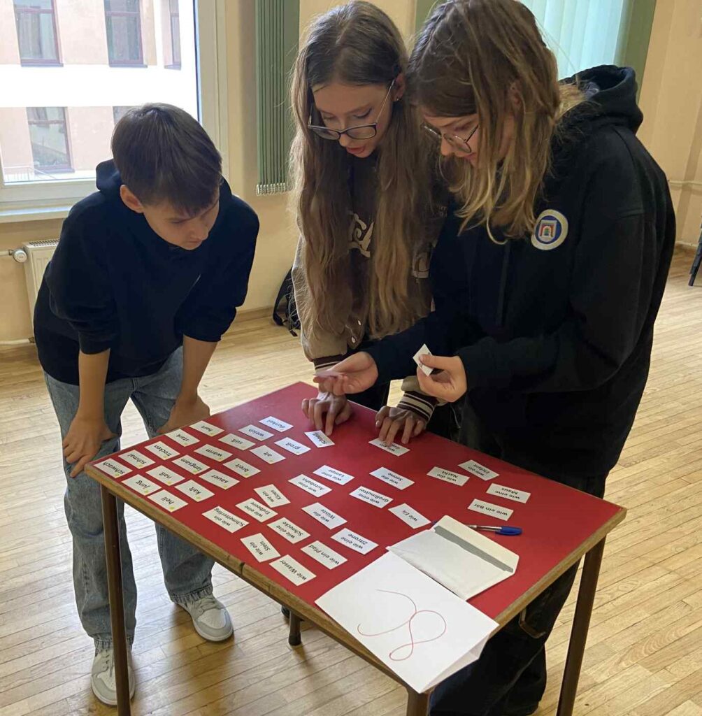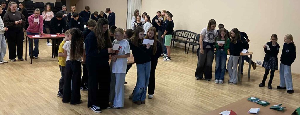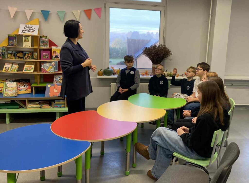 5 klasių mokiniai progimnazijos bibliotekoje susipažino su vokiškai kalbančių šalių rašytojais ir poetais, jų kūriniais, išleistomis knygomis ir dalyvavo nuotaikingoje viktorinoje.