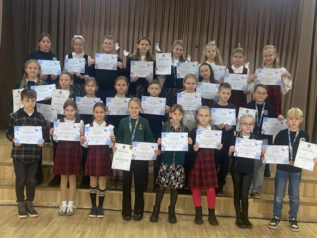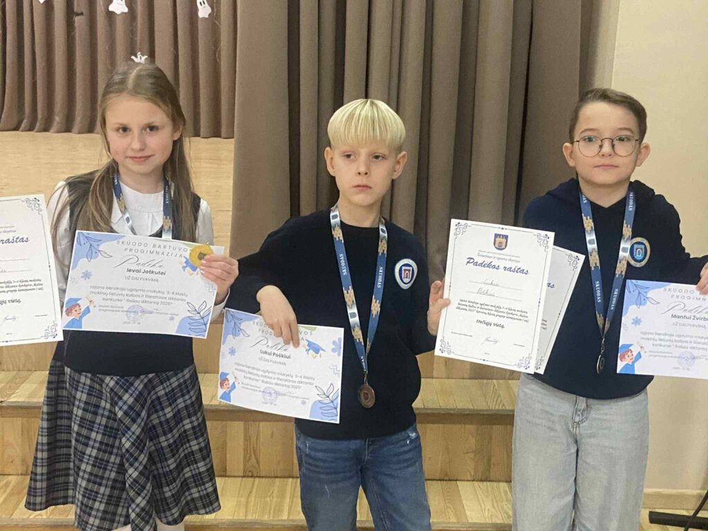 Šiandien, lapkričio 18 d., progimnazijoje vyko Skuodo rajono ugdymo įstaigų 3-4 klasių mokinių lietuvių kalbos ir literatūros konkursas ,,Rašau diktantą 2025″. Diktanto konkurse dalyvavo 15 mūsų mokyklos mokinių: 8 trečiokai ir 7 ketvirtokai. Šiais metais sėkmė lydėjo šiuos mokinius: