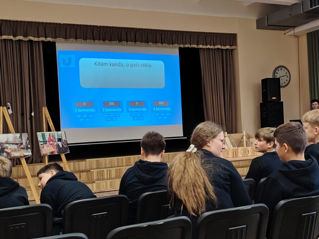 Užsiėmimo metu mokiniai klausėsi pasakojimų, susipažino su senoviniais žodžiais ir jų reikšmėmis, išgirdo įvairių įrankių pavadinimus. Vėliau jie azartiškai dalyvavo viktorinoje, stengėsi kuo tiksliau atsakyti į pateiktus klausimus, džiaugėsi teisingais atsakymais, o geriausiai pasirodžiusi komanda buvo apdovanota saldžiais prizais.