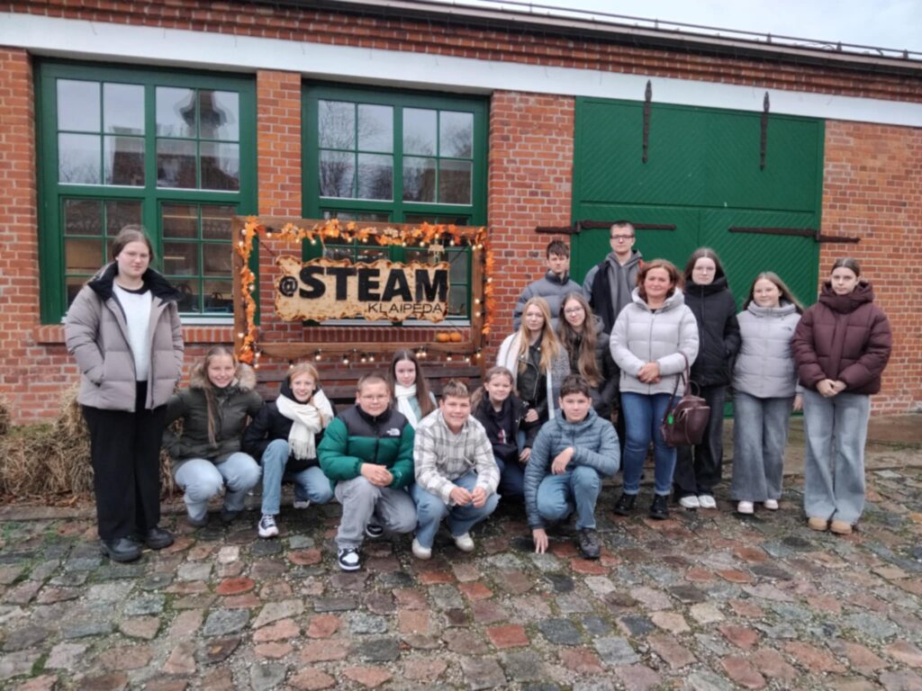 Gamtamokslinio ugdymo būrelio „Pažinkime gamtą per tyrinėjimą“ (TŪM II programos STEAM srities 60 veikla) penkiolika mokinių, lydimi savo mokytojų R. Veitienės ir D. Lukošienės, vyko į uostamiestį – Klaipėdą. Klaipėdos STEAM atviros prieigos centre jie dalyvavo mokymuose „Nafta vandenyje: kaip sprendžiamos taršos problemos?“, kurių metu atliko įvairius tiriamuosius darbus.