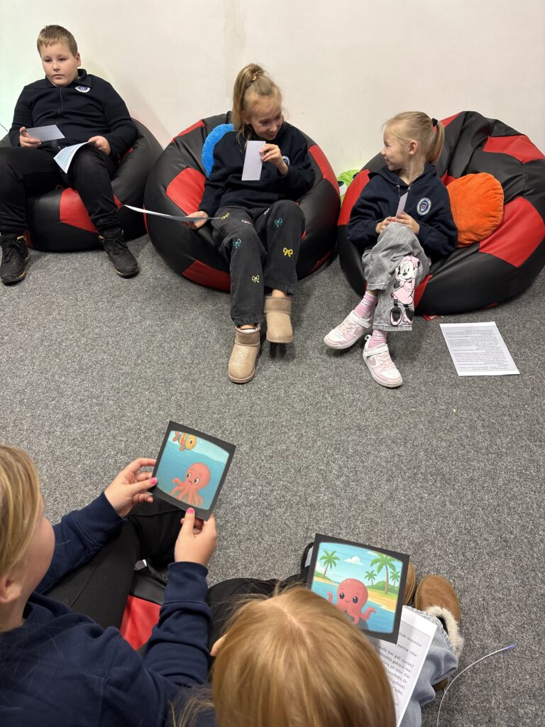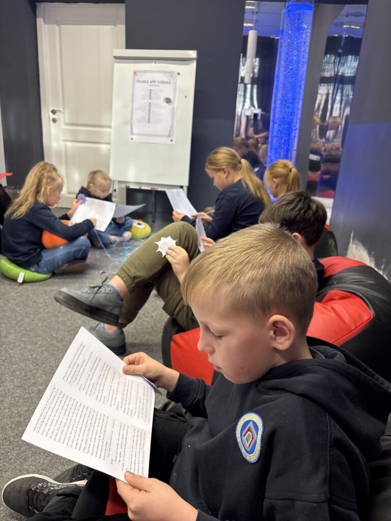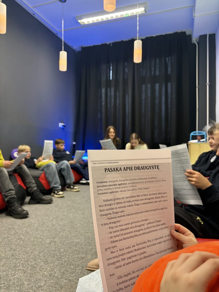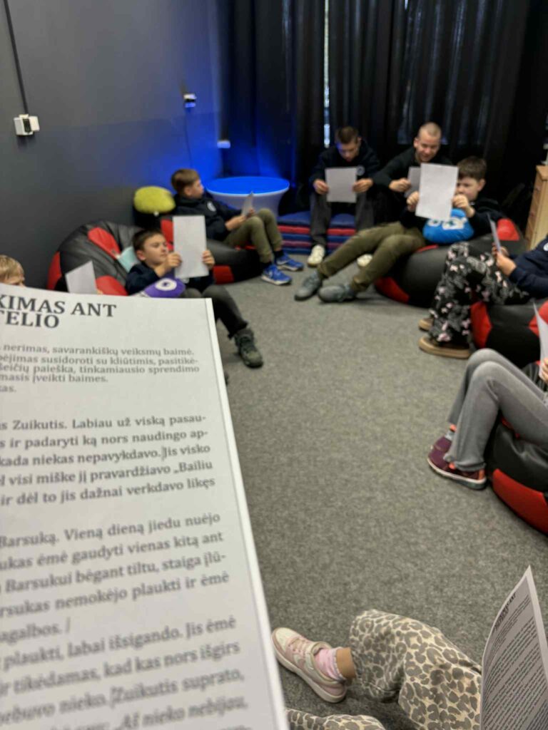 Projekto „Atradimų kelionė laiko erdvėse“ numatytos veiklos tęsiasi ir vis labiau įtraukia mokyklos bendruomenę. Specialiosios pedagogės Vitos Kovienės ir psichologės Loretos Šakalienės pastangomis sukurta iniciatyva „Skaitome kartu“ jau spėjo įsibėgėti. Per pertraukas 8a klasės mokiniai kantriai ir nuoširdžiu entuziazmu skaito kartu su 3b klasės vaikais. Tokia draugystė suteikia jaunesniesiems daugiau drąsos, o vyresniesiems – atsakomybės pojūtį. Šaunuoliai 8a klasės berniukai ir mergaitės!