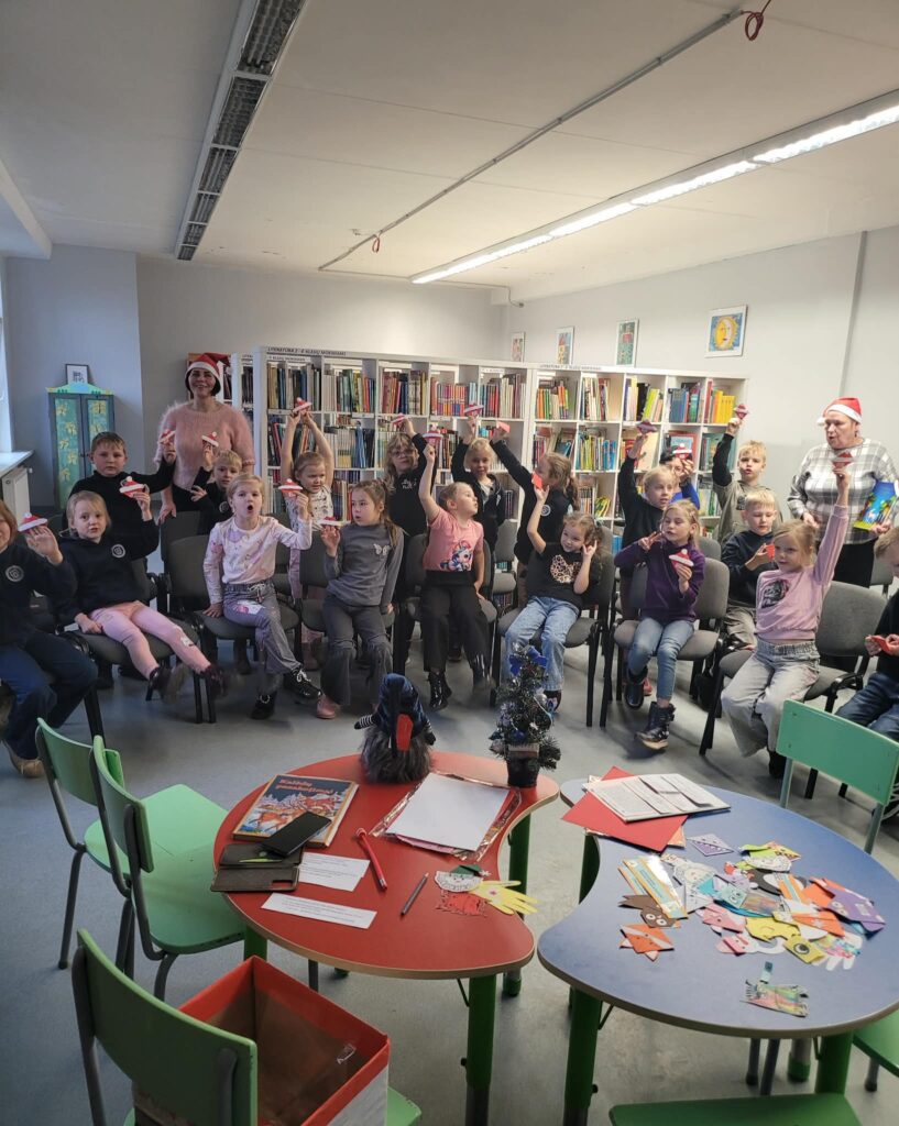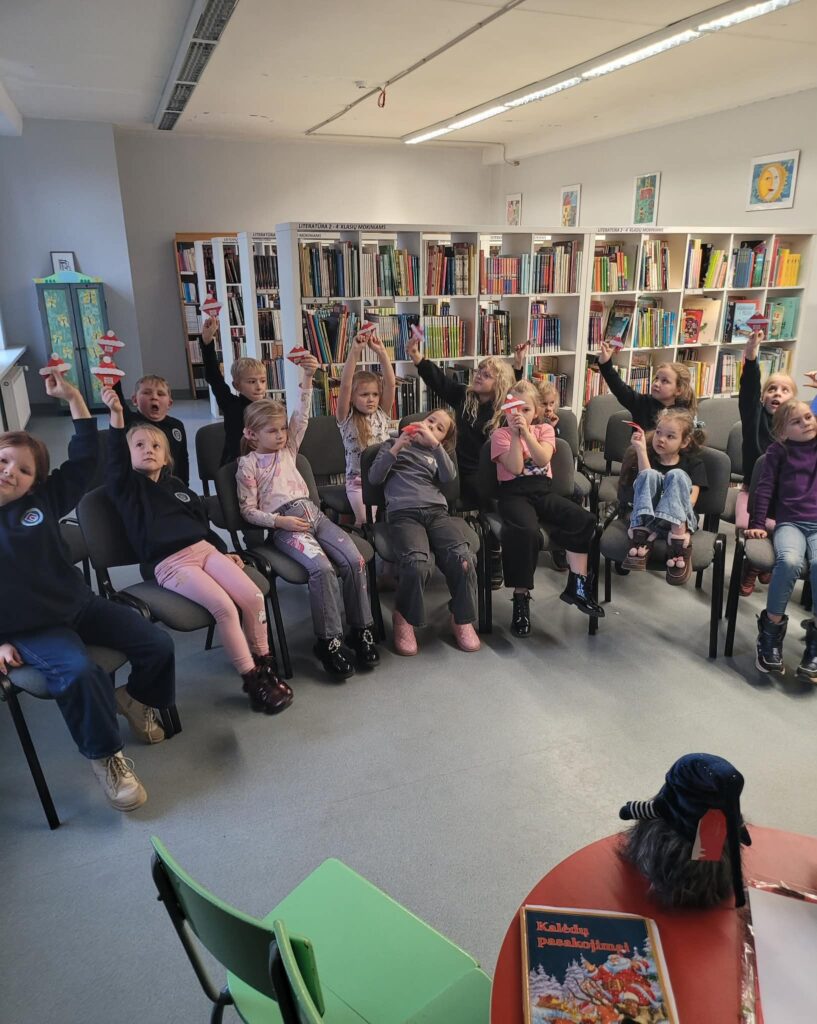 Mūsų progimnazijos biblioteka pradeda akciją „Bibliotekų knygų Kalėdos“. 1a klasė buvo pakviesta į teatralizuotą renginį bibliotekoje, skirtą knygų Kalėdoms. Pirmokai dalyvavo linksmoje diskusijoje „Kur dingo knygos?“ kartu su personažais nykštukėmis. Buvo nuspręsta papildyti knygų lentynas naujomis vaikų dovanotomis knygomis. Mokiniai, dalyvavę diskusijoje buvo apdovanoti skirtukais – nykštukų kepurėlėmis, kurios visiems primins, jog reikia ne tik patiems skaityti, bet ir dalintis perskaitytomis knygomis. Dėkojame progimnazijos bibliotekos darbuotojoms Sigitai