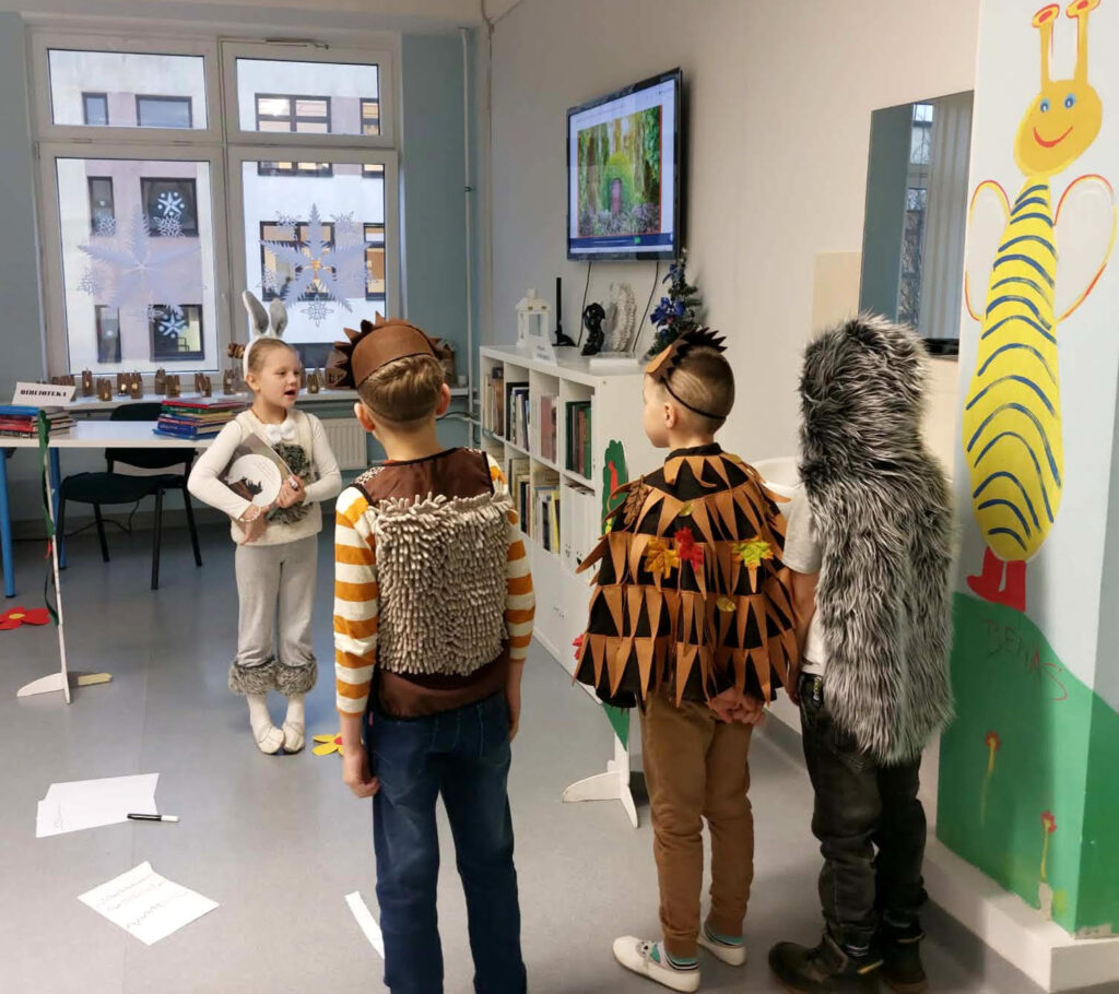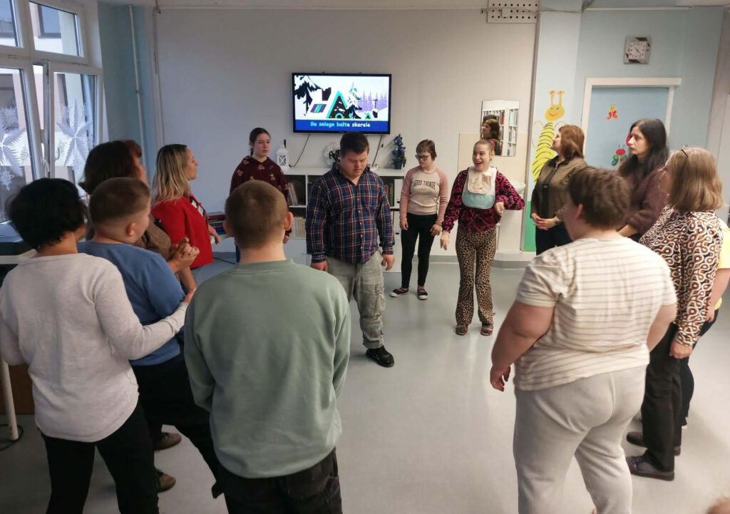 2025 m. gruodžio 16 – osios rytą į tradicinį kalėdinį susitikimą progimnazijos bibliotekoje rinkosi specialiųjų ugdymosi klasių mokiniai ir jų vadovės. Renginio pradžioje 1b klasės mokiniai vaidino pasakėlę pagal Pauliaus Norvilo knygelę „Strykt pastrykt“. Gražūs kostiumai, vaikų drąsa, noširdžios emocijos pradžiugino žiūrovus. Bibliotekos vedėja Bronislava Domarkienė padėkojo pirmokams už nuotaikingą vaidybą, o jų mokytojai Jūratei Baranauskaitei – už puikų vaikų paruošimą. Vaidinimas bibliotekoje sukūrė šventinę nuotaiką, suteikė šilumos ir jaukumo, o vėliau Reda M., Jolita Š., Rita L., Alma Š., Santa K., Vilija S., Joana B., Violeta E. iš kalėdinės kepurės išsitraukusios po siurprizą, kūrė kalėdinius linkėjimus kolegėms ir vaikams. Bibliotekininkė Sigita Dabrienė renginio dalyviams dovanojo knygų skirtukus, kvietė šokti ir dainuoti. Laikas bibliotekoje pralėkė greitai, bet šventinė nuotaika dar ilgai tvyrojo bibliotekos erdvėse.