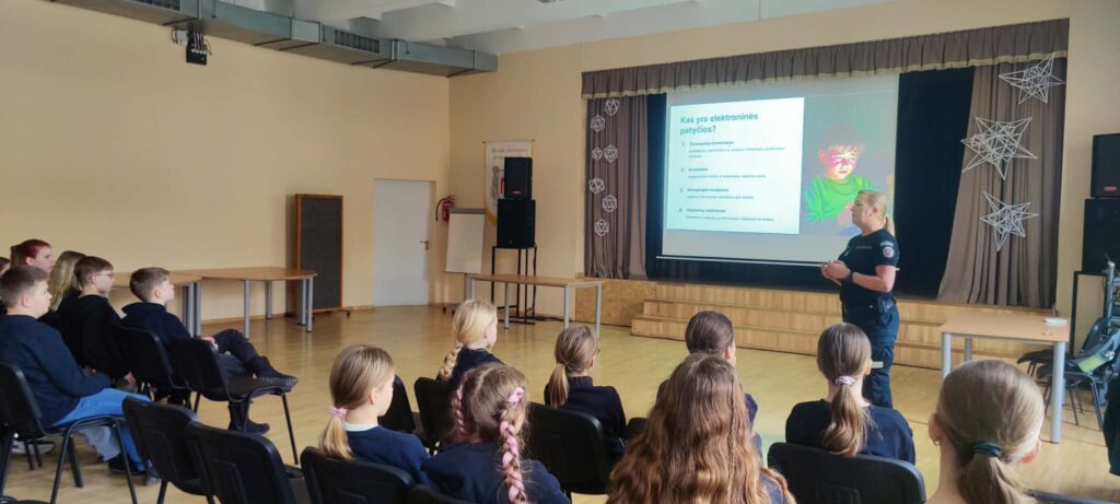 Džiaugiamės aktyviu mokinių įsitraukimu ir prasmingomis diskusijomis – tai puiki pradžia sąmoningesnio ir saugesnio elgesio internete link! Klasės valandėlę vedė Skuodo policijos komisariato bendruomenės pareigūnė Lina Tiškuvienė. Socialinės pedagogės Gitana ir Edita