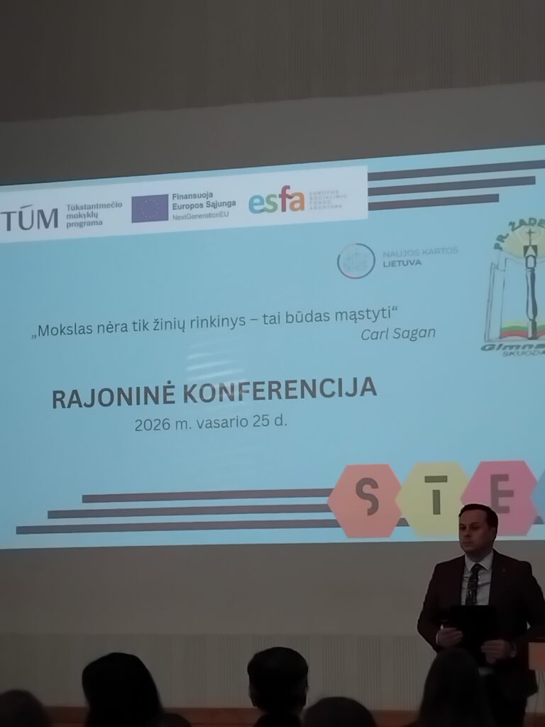 Vasario 25 d. Skuodo Pranciškaus Žadeikio gimnazijoje vyko tiriamųjų–projektinių darbų (STEAM) konferencija, subūrusi rajono mokinius, mokytojus ir švietimo bendruomenę. Renginio metu mokiniai pristatė integruotus projektus, atskleidusius jų smalsumą, kūrybiškumą ir gebėjimą teorines žinias taikyti praktikoje.
