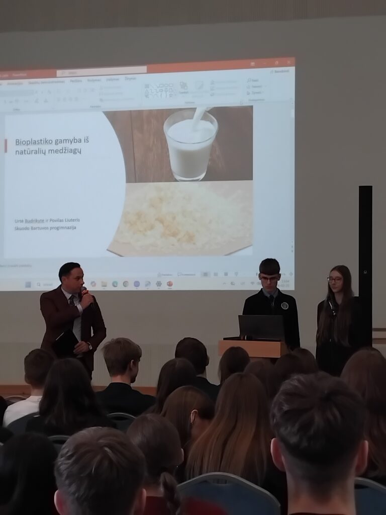 Konferencijoje dalyvavo ir Skuodo Bartuvos progimnazijos aštuntokai, kaip klausytojai ir pranešėjai. Mokiniai Urtė Budrikytė ir Povilas Liuteris parengė ir pristatė pranešimą „Bioplastiko gamyba iš natūralių medžiagų“. Darbo vadovės – mokytojos Daiva Lukošienė ir Rasa Veitienė.