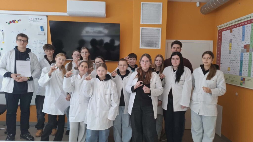 Gamtamokslinio būrelio „Pažinkime gamtą per tyrinėjimą“ mokiniai kartu su mokytojomis Rasa Veitiene ir Daiva Lukošiene vasario 26 dieną vyko į Telšių STEAM centrą.