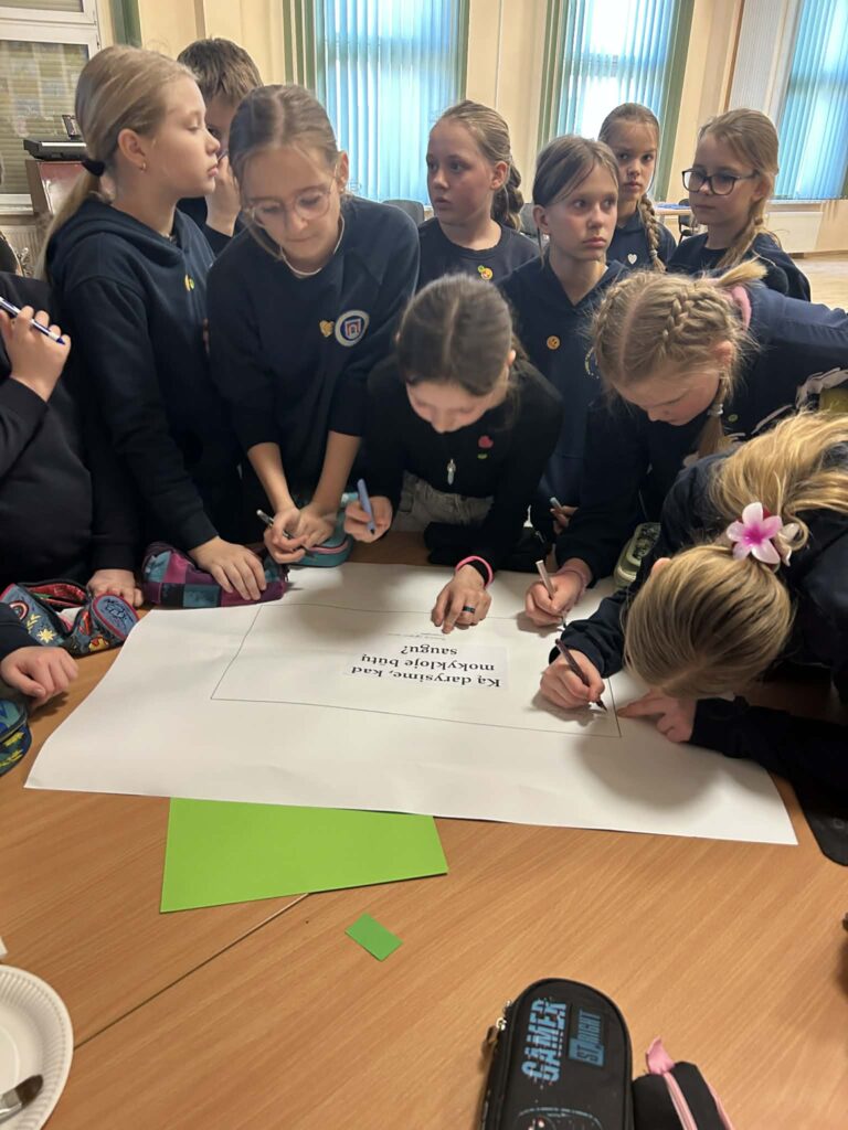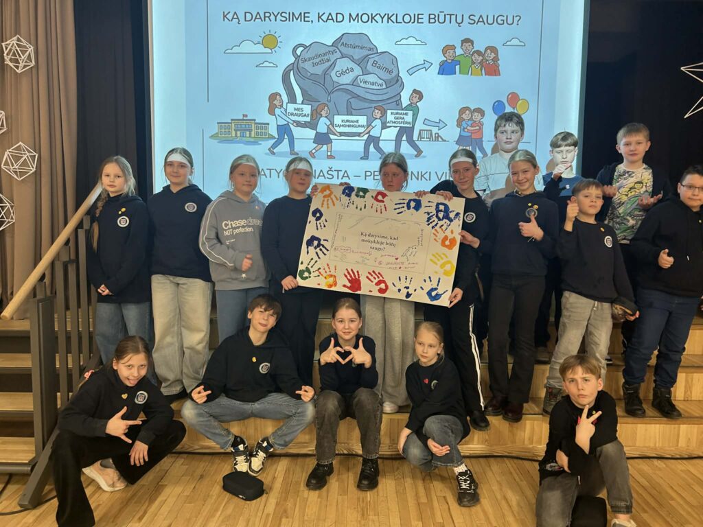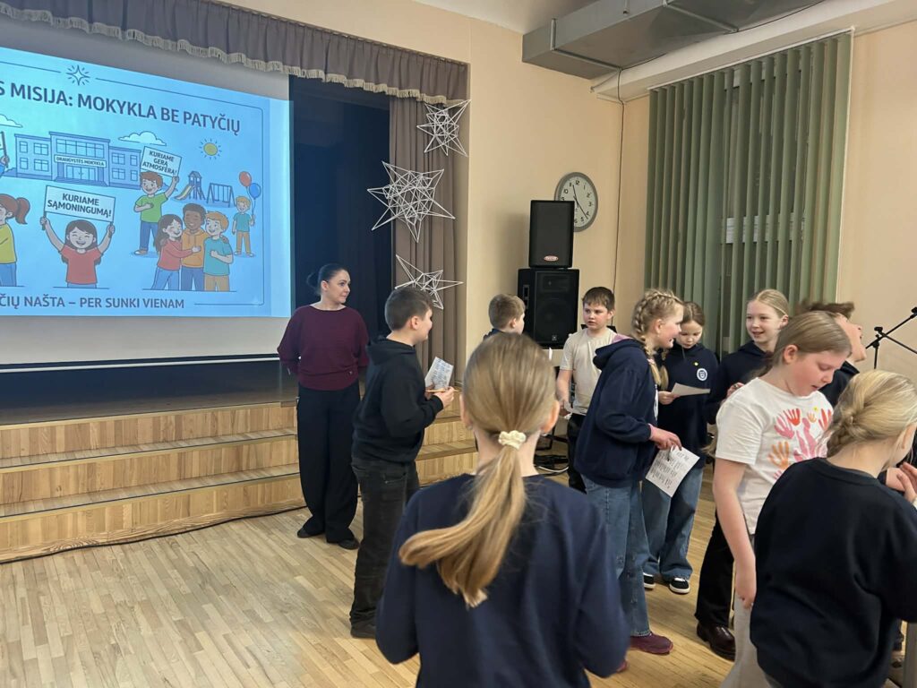 Šiandien socialinės pedagogės Gitana ir Edita pakvietė 4A ir 4B klasių mokinius į bendrą veiklą, skirtą paminėti iniciatyvą „Kovas – mėnuo be patyčių“.