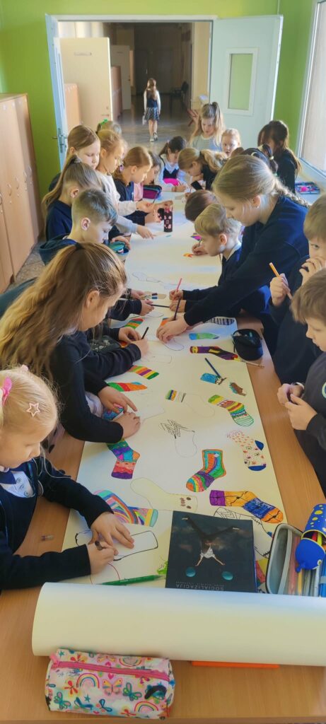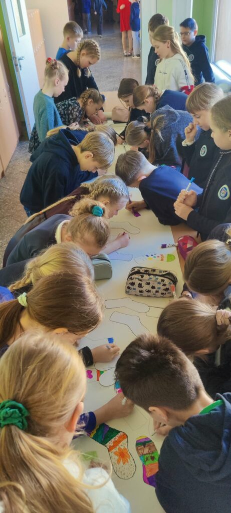 Minint Pasaulinę Dauno sindromo dieną, mūsų progimnazijos bendruomenė prisijungė prie prasmingos akcijos „Kojinių kelias“. Per ilgąsias pertraukas mokiniai ir mokytojai buvo kviečiami ant ilgo popieriaus lapo, simbolizuojančio kelią, nupiešti spalvingą kojinę.
