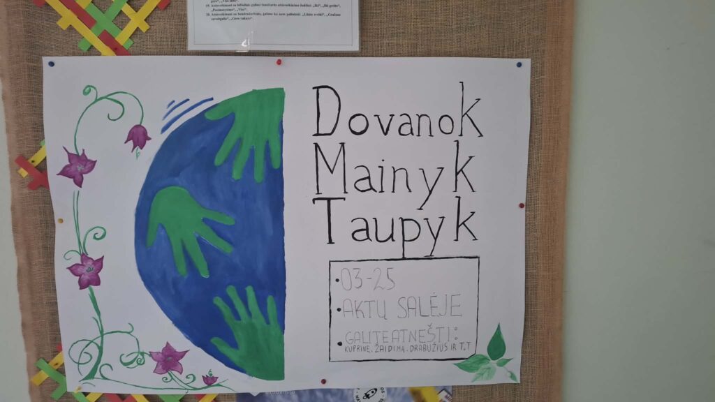 Pirmą kartą mokykloje buvo surengta tvarumo akcija „Mainyk! Dovanok! Taupyk!“.