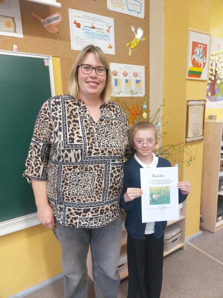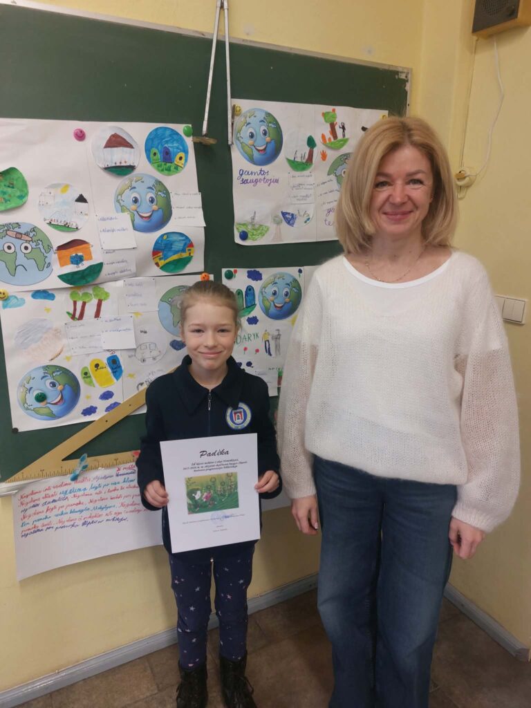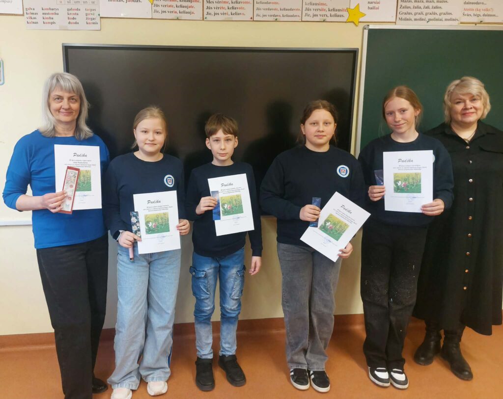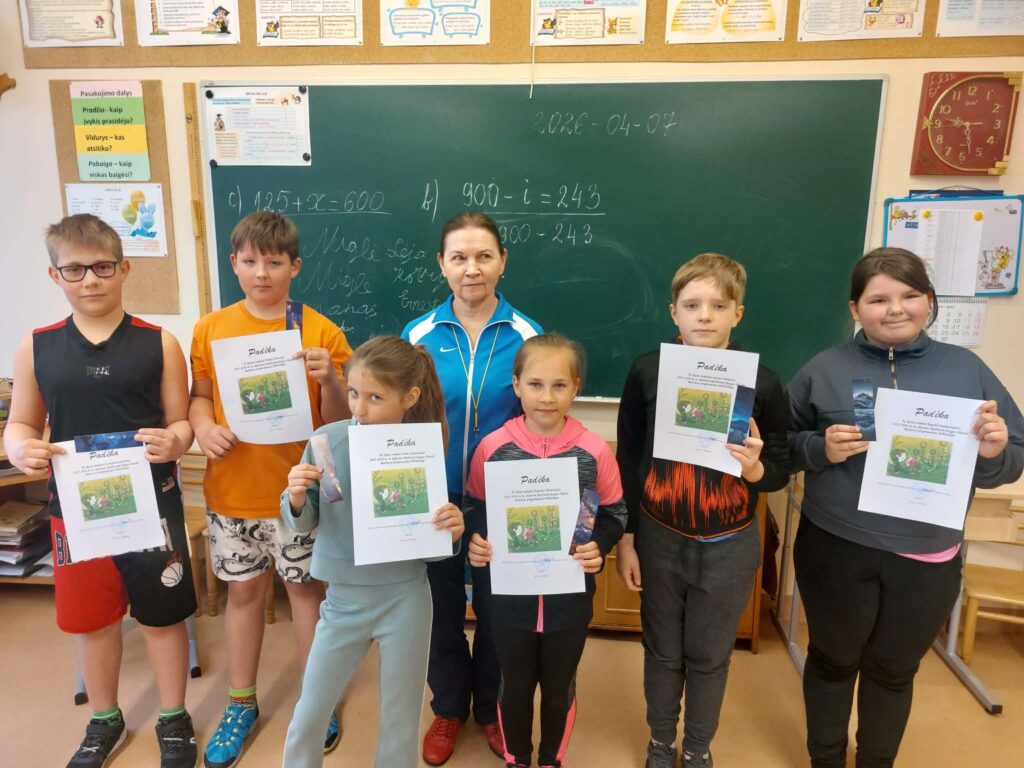 Padėkos įteiktos 2a klasės mokiniams Kamilei Jonkutei, Danieliui Lekstučiui (klasės vadovė Edita Pocienė), 2c klasės mokinėms Viltei Griciūtei, Amelijai Litvinaitei, Gustei Stasiulytei (klasės vadovė Rima Narkuvienį), 2d klasės mokinei Lukai Nemeikšytei (klasės vadovė Asta Jekučinskienė).