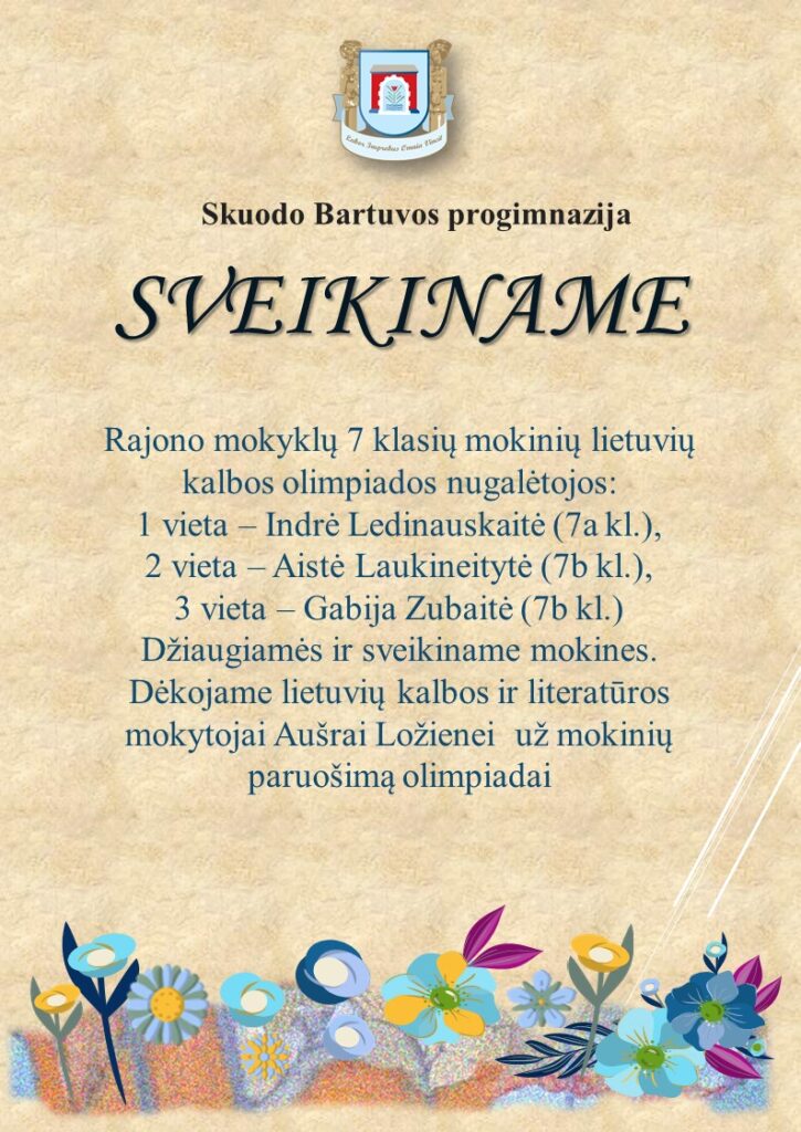 Bartuvos progimnazijos 7d klasės mokinių komanda: Emilija Urbonaitė, Edita Škimelytė, Lukas Jonušas, Gintarė Švenčionaitė, Gabija Skudytė ir Austėja Lemežytė dalyvavo aplinkosaugos konkurse „Žalioji odisėja, Jaunučiai ’26“, kurį organizavo pakuočių atliekų tvarkymo organizacijos „Žaliasis taškas“ kartu su aplinkosaugine iniciatyva „Kita forma“.