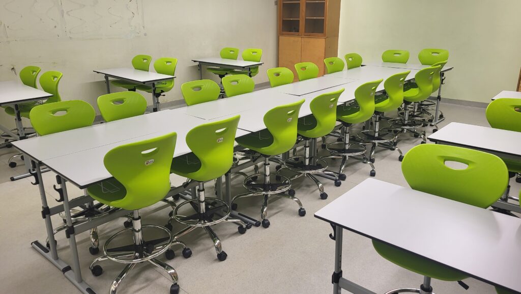 Vykdant Tūkstantmečio mokyklų II programą, Skuodo Bartuvos progimnazija įsigijo naujus fizikos kabinetui skirtus mokyklinius baldus.