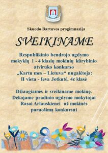 3 vietą iškovojo 5b klasės mokinys Benas Galdikas (mokytoja Danutė Vitkuvienė);