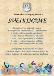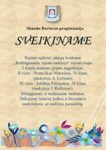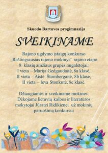 Sveikiname mokinius ir jų mokytojas, sėkmės puoselėjant mūsų gimtąją kalbą.