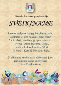 Sveikiname mokinius ir jų mokytojas, sėkmės puoselėjant mūsų gimtąją kalbą.