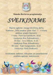 3 vietą iškovojo 5b klasės mokinys Benas Galdikas (mokytoja Danutė Vitkuvienė);