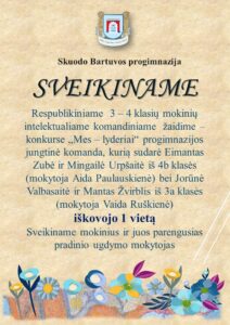 Stonkutė (8c) – II vieta; Andrius Butkus (8a), Karolina Būtaitė (8a), Aistė Štombergaitė (8b),